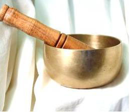 The gentle contact of the wooden mallet, revolving slowly and consistently around the rim of the bowl, sets the molecules in the metal into motion; they vibrate in response to the touch and movement, and the bowl “sings”.